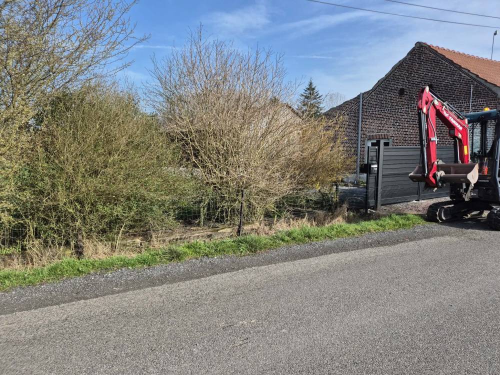 Arrachage d une Haie suivi d une clôture rigide avec bande bruyère sur ennevelin