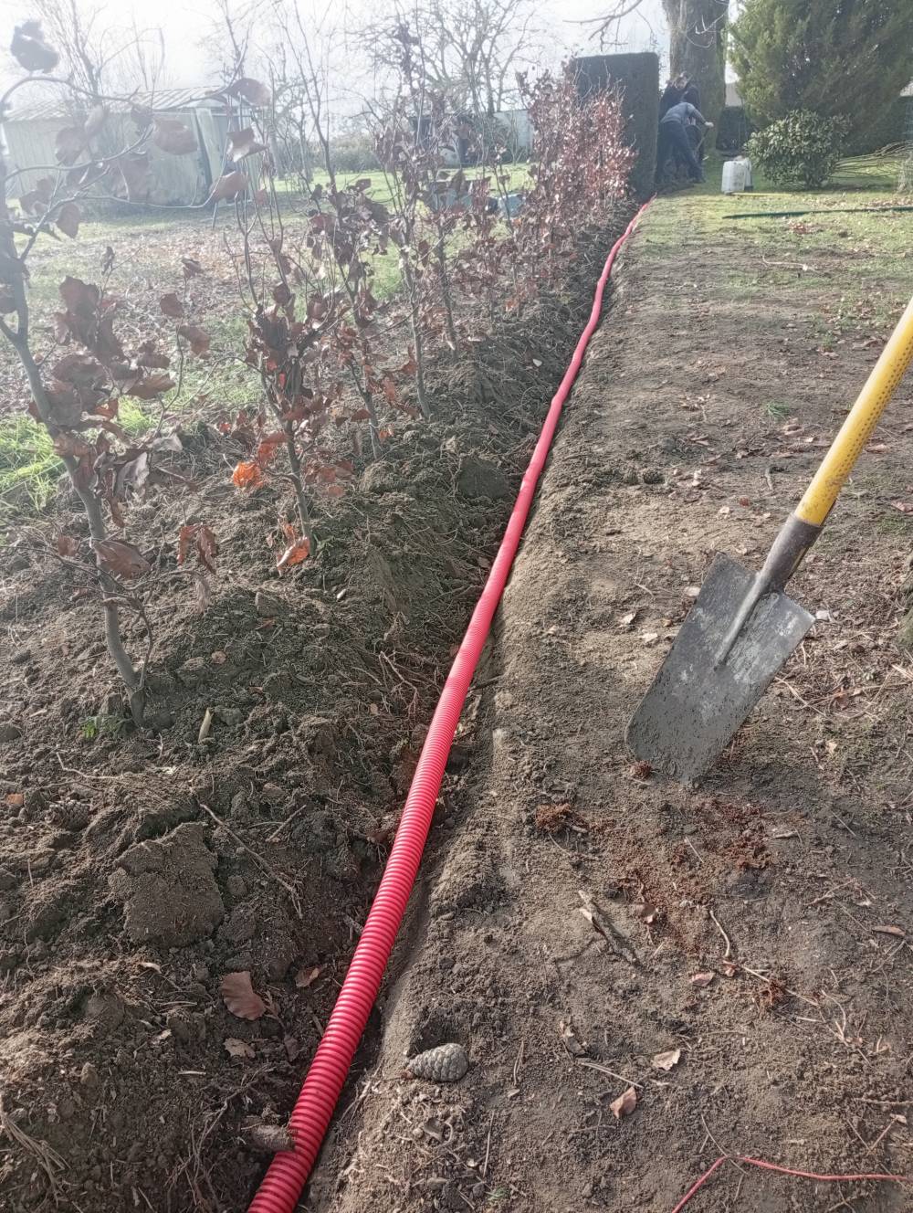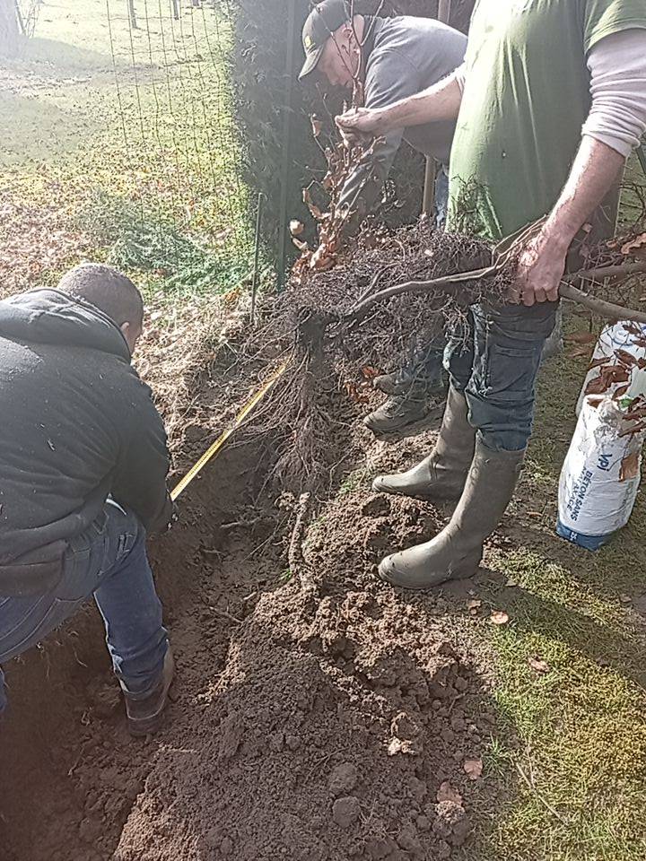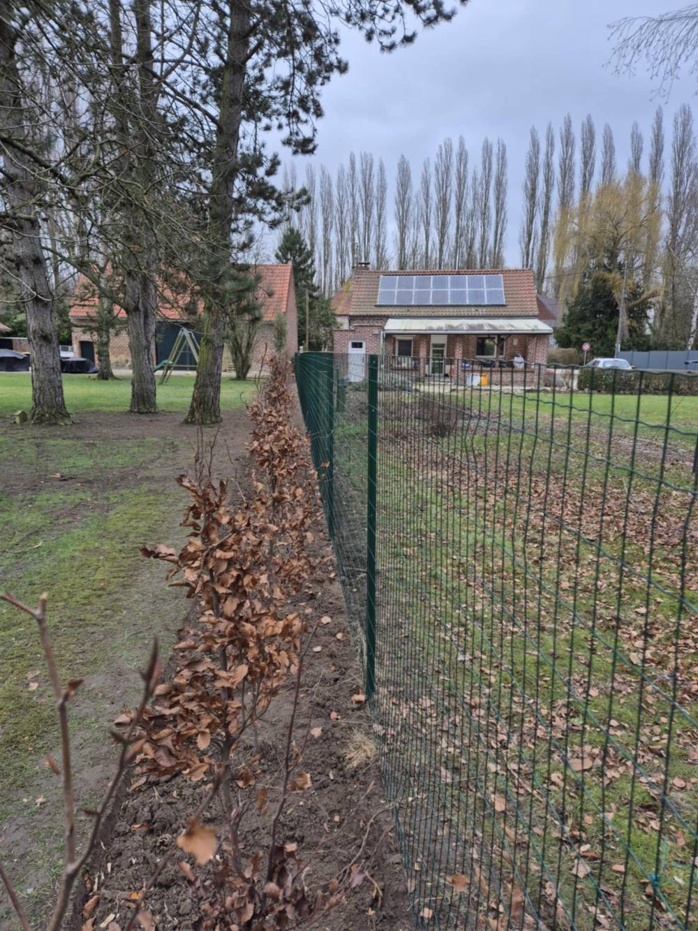 Arrachage d une Haie sur bouvignies. Remplacement d un grillage souple avec plantation