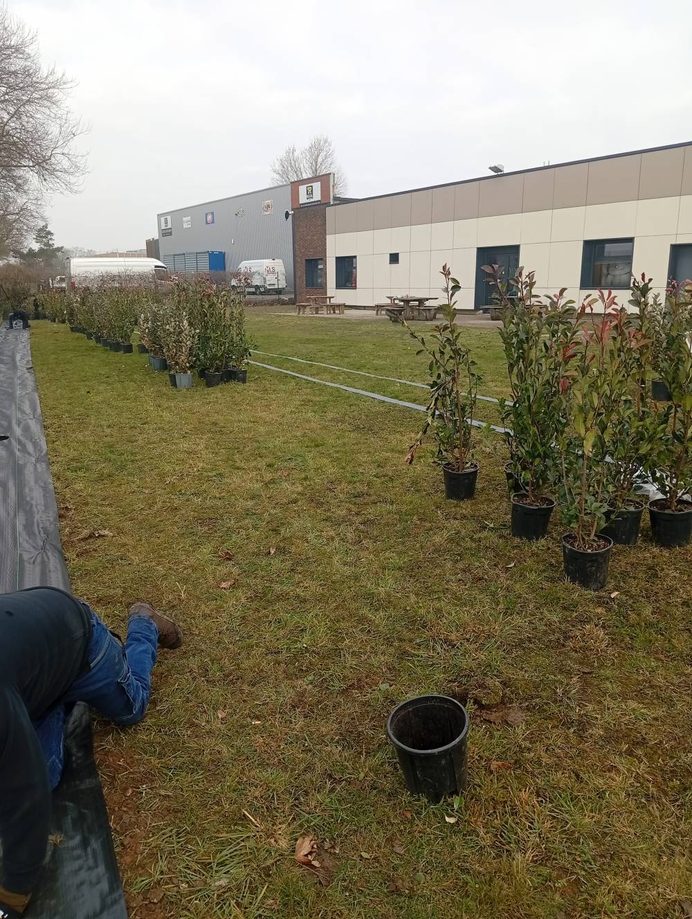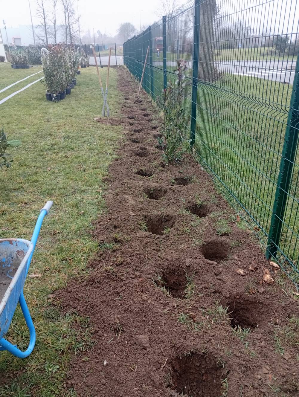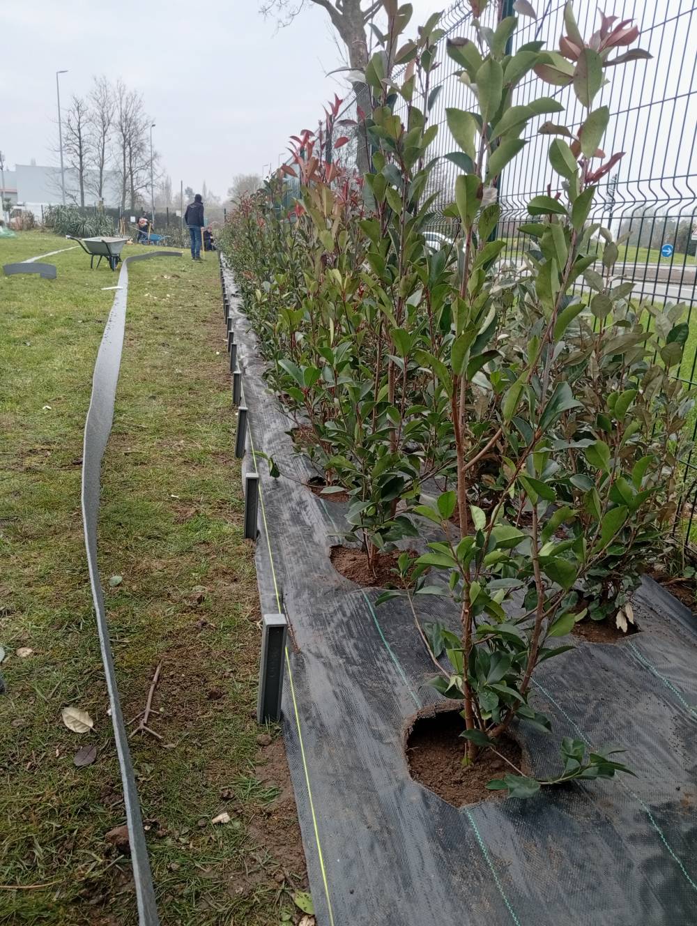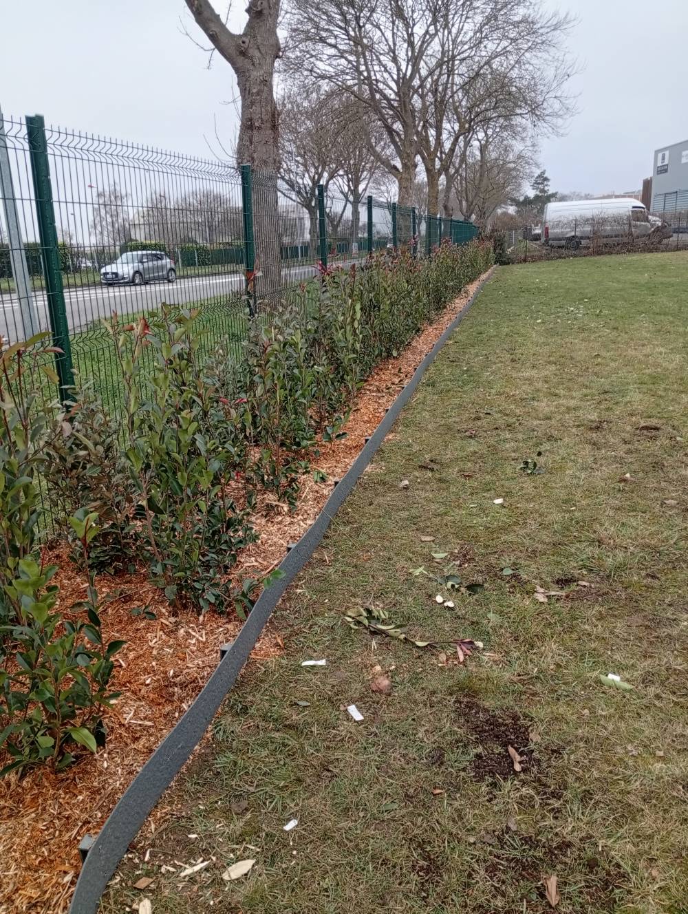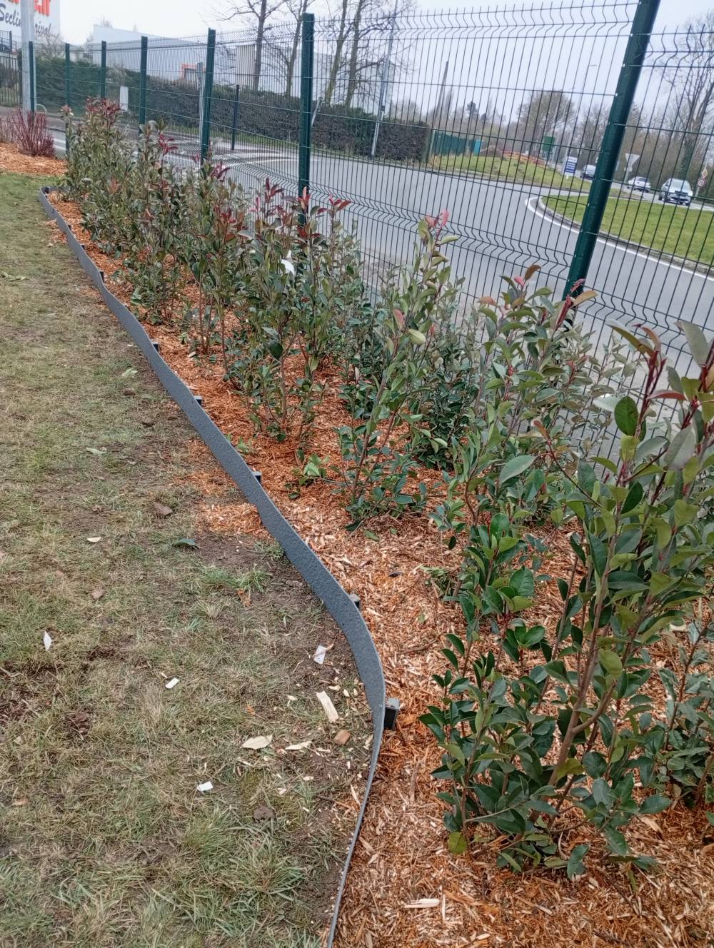 Plantation photinia et elagnus et mise en place d une bordure et copeaux sur seclin