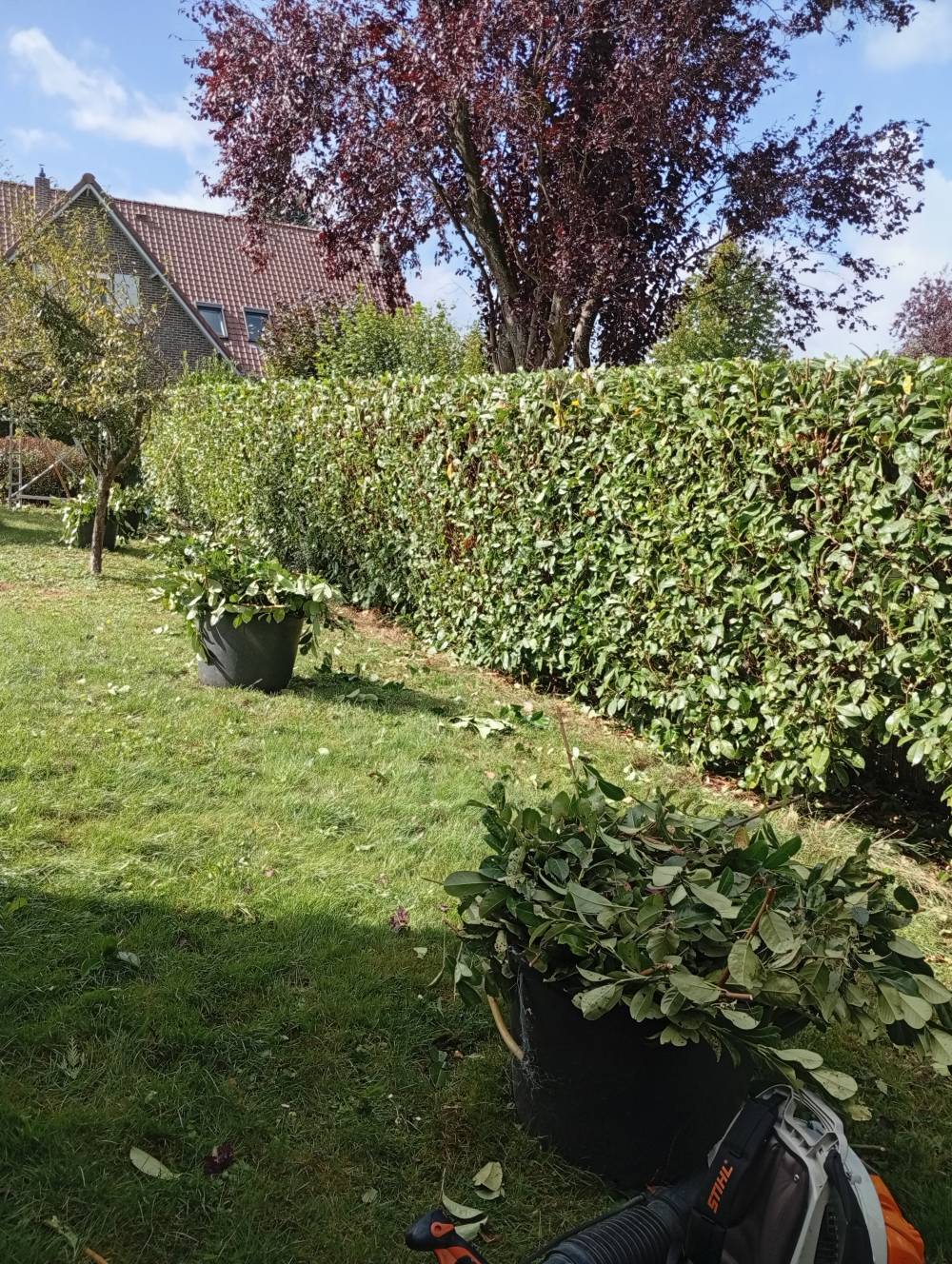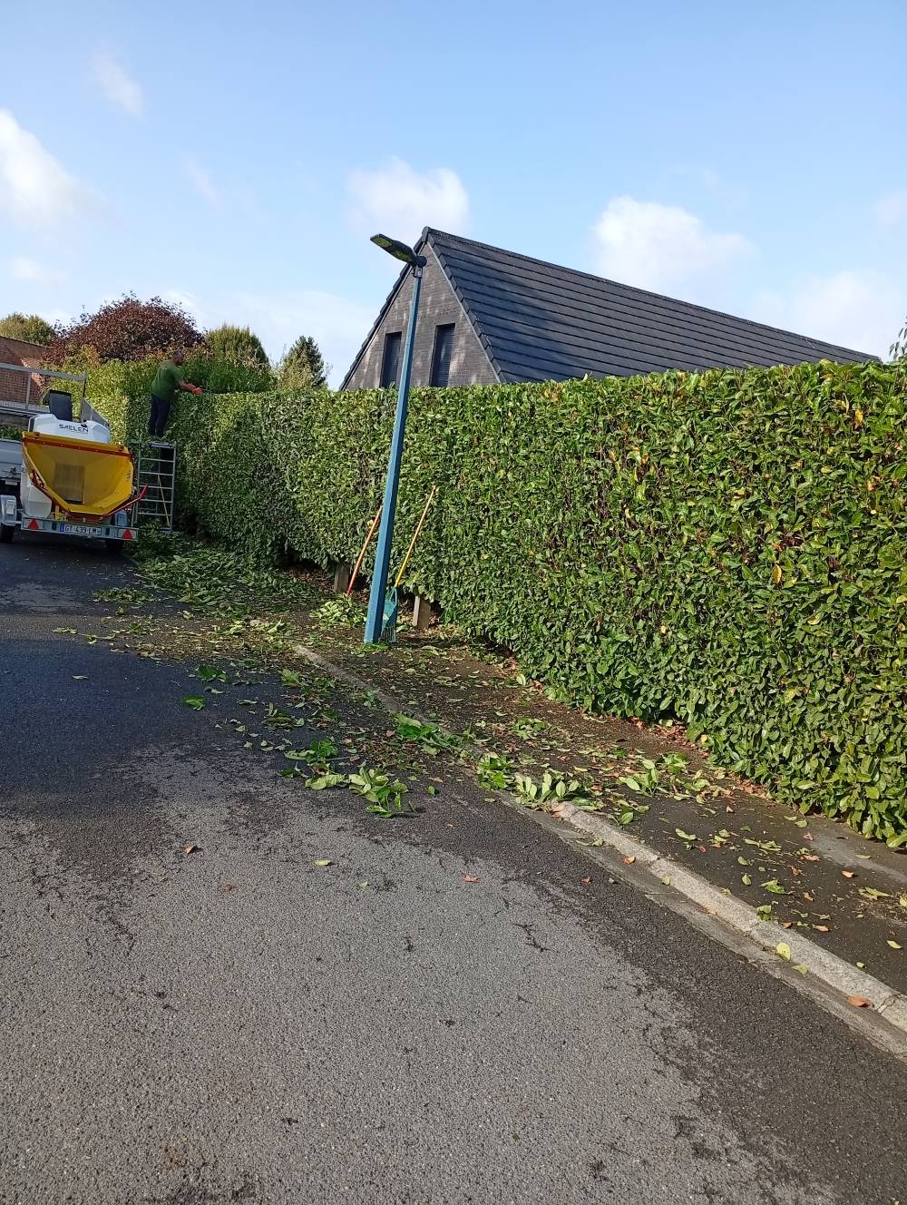 Rabattage d une haie de lauriers sur templeuve