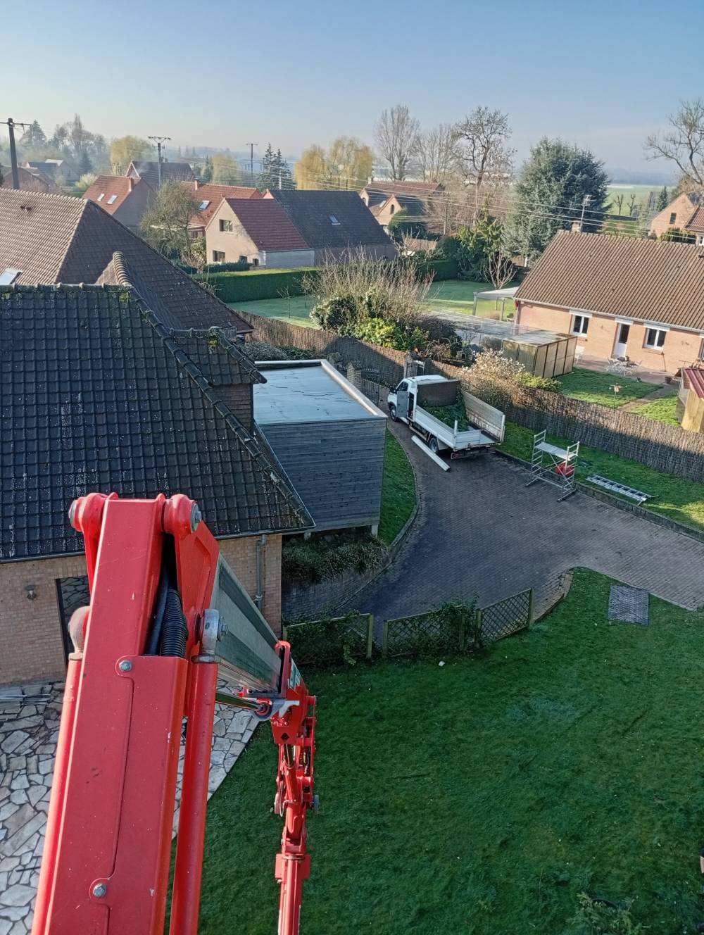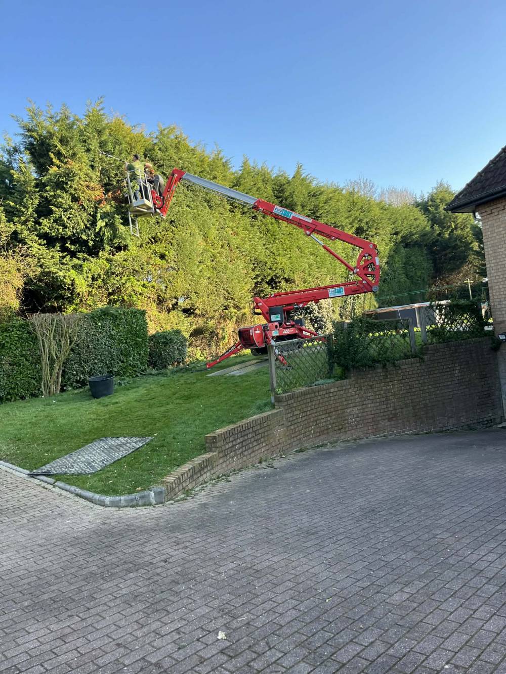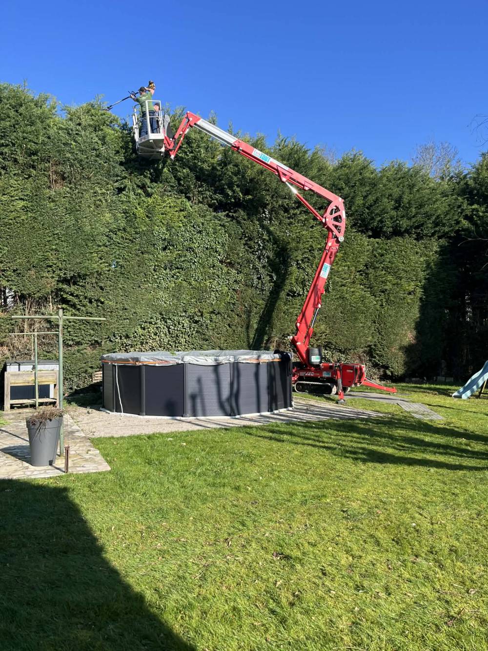 Taille d une Haie avec nacelle sur avelin
